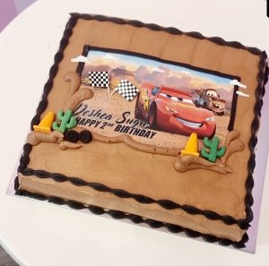 Let us create a sponge cake for you using an image of your choice! Simply choose a size, and upload your chosen image. We will match the colors and decoration to the theme of your image!